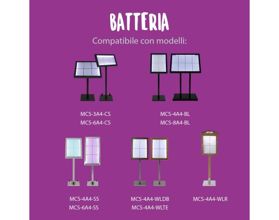 Batteria per Espositore LED - Impermeabile - Autonomia da 6 a 36 Ore - MCS-BATT