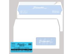 Busta con doppia finestra, da 90 gr con taglio arrotondato, gommata. Formato 11,5x23 cm.