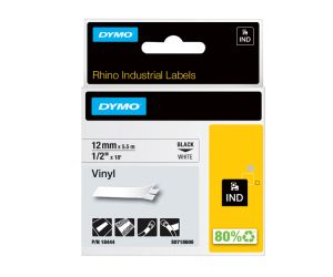 Etichette nylon flessibile superfici curve per stampanti professionali Dymo Rhino Pro 5200. Il poliestere permanente è adatto a superfici piatte, anche estremamente rugose, ed è molto resistente a solventi e sostanze chimiche. Il vinile è in generale adatto a tutte le superfici. Misure da 12 mm, stampa nera su sfondo bianco.