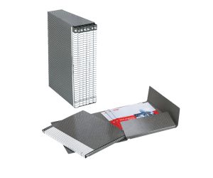 Gruppi di cartelle a 2 lembi realizzati in robusto fibrone da 1,2 mm stampato e plastificato. Custodia in fibrone da 0,9 mm stampata con rinforzi metallici laterali. La plastificazione consente di mantenere brillante la superficie e di cancellare facilmente le scritte (con gomma da matita o con alcool) rendendo il prodotto riutilizzabile nel tempo. Il taglio obliquo della custodia permette di estrarre facilmente il raccoglitore. Contenuto in materiale riciclato 100%, imballo in cartone 100% riciclato e 100% riciclabile. Formato 25x32 cm.