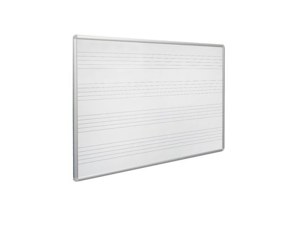 Lavagna magnetica pentagramma con superficie in acciaio laccato da 4 decimi, scrivibile e cancellabile con marcatori a secco con cornice in alluminio. Completa di vaschetta portaoggetti e materiale per fissaggio a muro.
