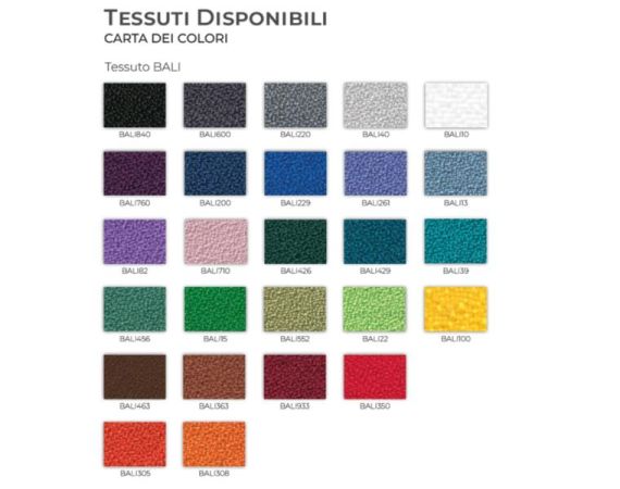- Sedile ergonomico con interno in legno rivestito in tessuto BALI