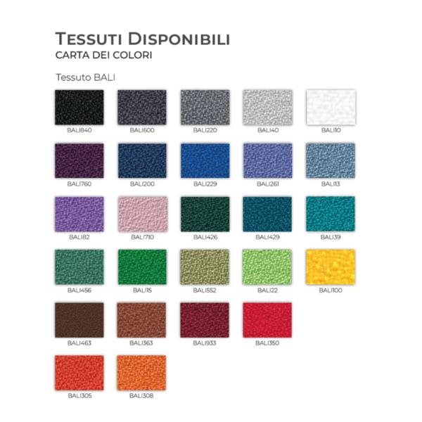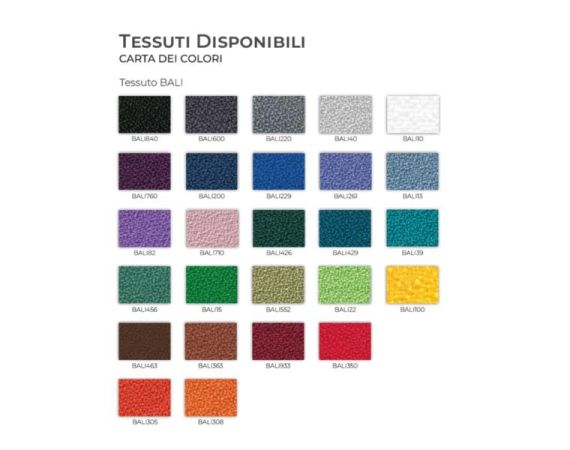 - Sedile e schienale rivestiti in tessuto BALI