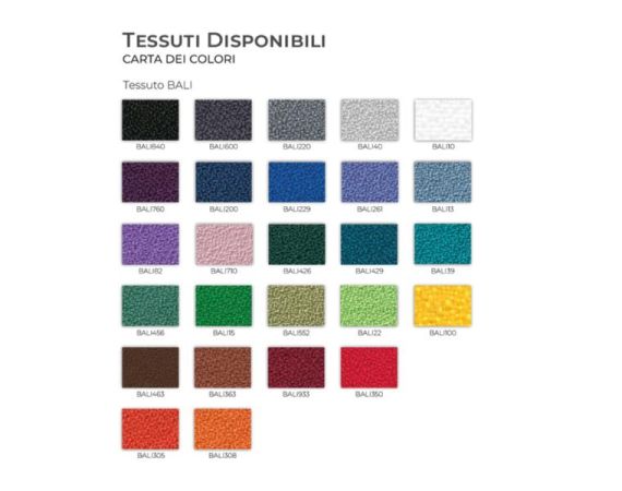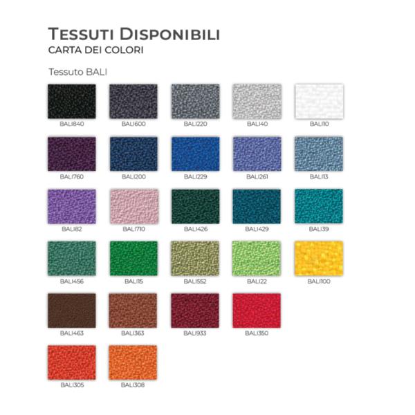 - Sedile e schienale rivestiti in tessuto BALI