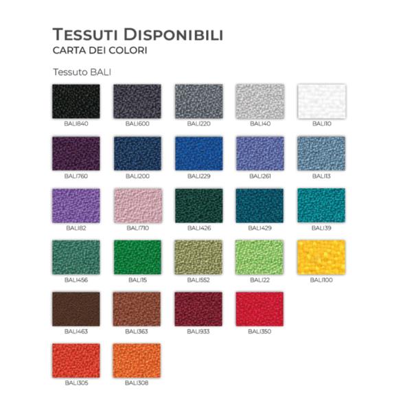 - Sedile e schienale rivestiti in tessuto BALI