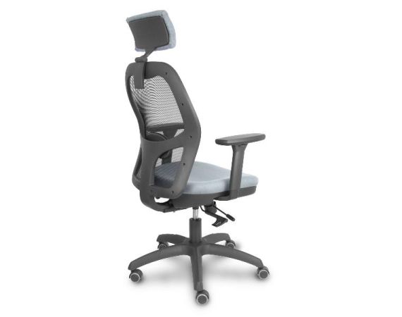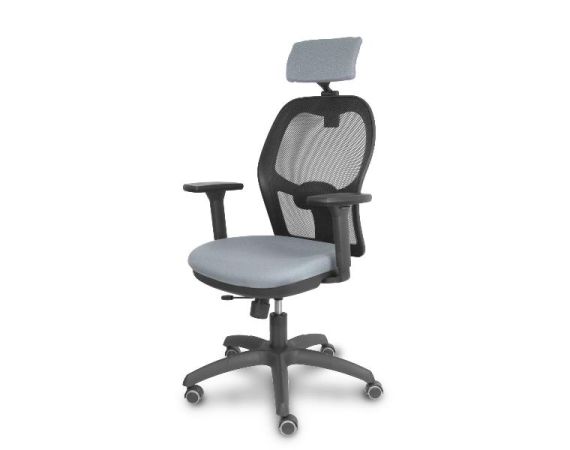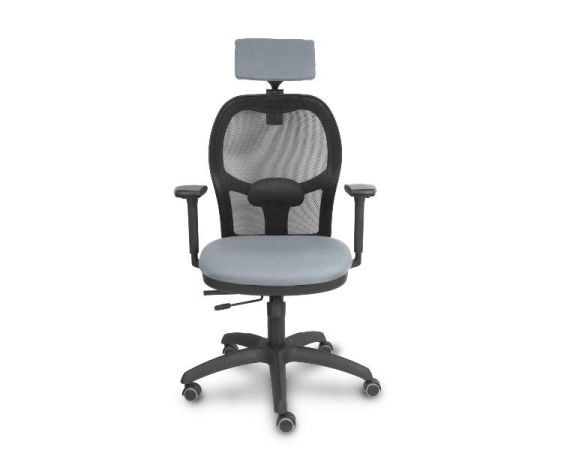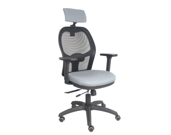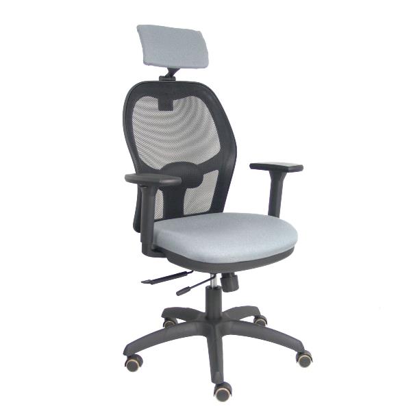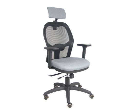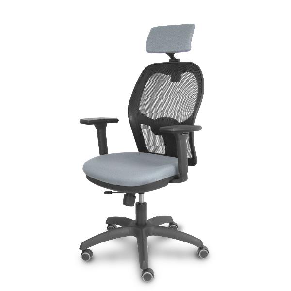PIQUERAS Y CRESPO Jorquera Sedia Ufficio Ergonomica Girevole con Poggiatesta, Schienale Rete Nero, Seduta Tessuto Grigio, Braccioli 3D