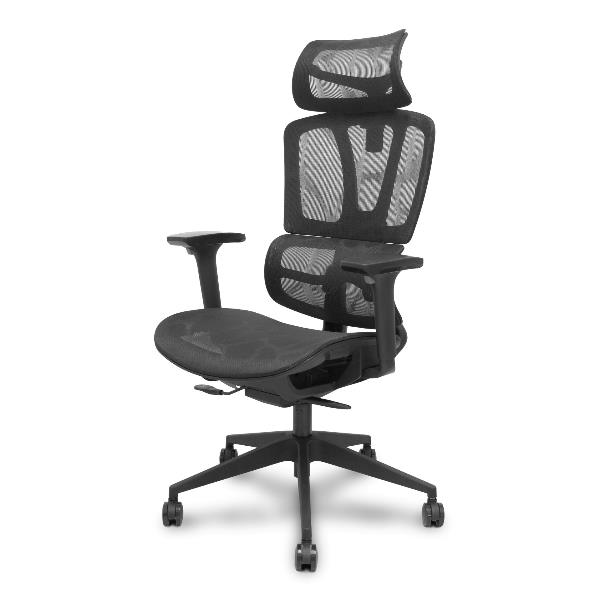 PIQUERAS Y CRESPO Pro537 Sedia Ufficio Ergonomica Girevole con Poggiatesta, Schienale e Seduta Rete Nero, Braccioli Regolabili 3D