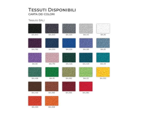 - Sedile e schienale rivestiti in tessuto BALI