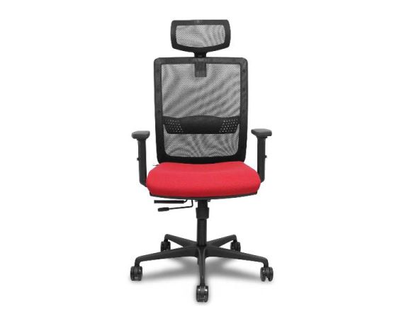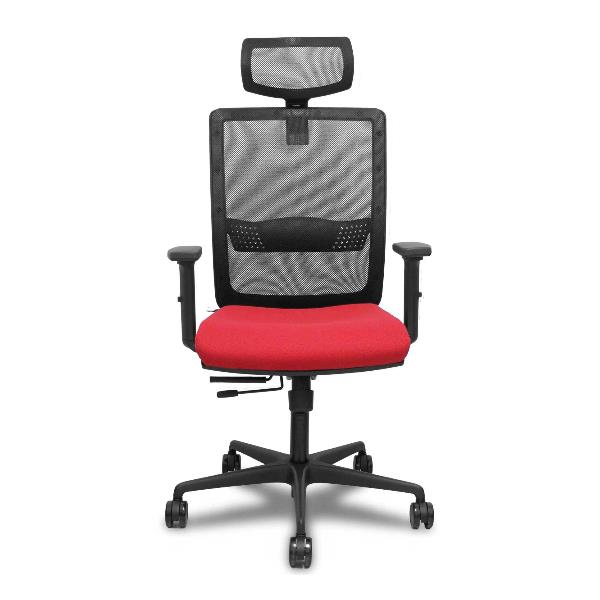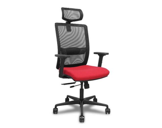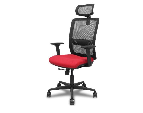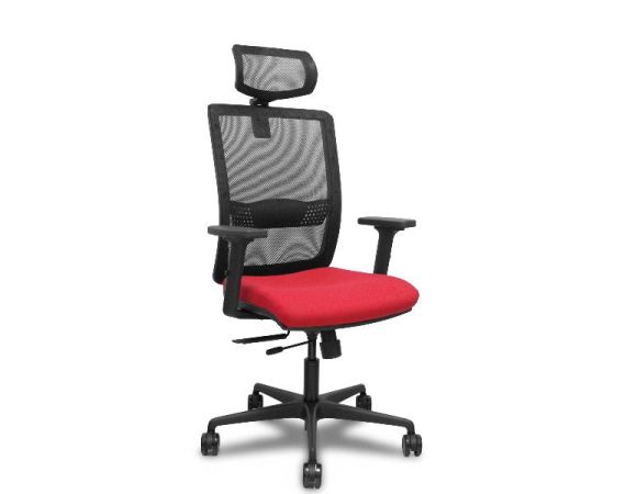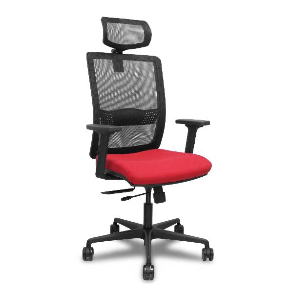 PIQUERAS Y CRESPO Sedia Ufficio HACHES Ergonomica Schienale in Rete Nero Seduta Rossa Tessuto Poggiatesta Braccioli Regolabile