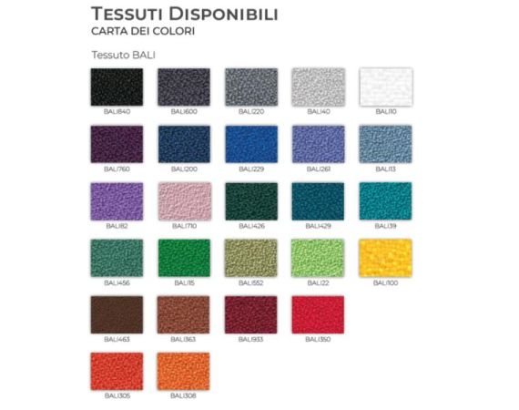 - Sedile e schienale rivestiti in tessuto BALI