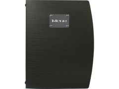 Porta menú di colore nero della collezione "Rio". Formato in A4 con un inserto doppio transparente compreso (4 facciate). Il portamenú ha la scritta "Menu" incisa su una parte di metallo che rende il porta menú trendy, originale ed adoparabile da qualsiasi struttura. Facile da pulire e forte per durare nel tempo.