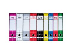 Registratori a leva in cartone accoppiato esternamente in carta goffrata opaca. Custodia realizzata in robusto cartone accoppiato a carta liscia nera. 2 anelli in acciaio cromato, con apertura a leva e pressino fermafogli in metallo inserito all'interno del meccanismo. Certificato FSC. Formato commerciale. Colore rosso.